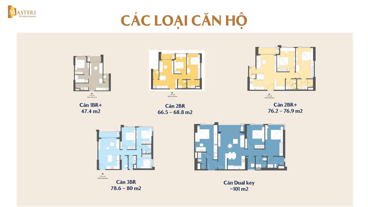 Loại hình căn hộ: 1PN+, 2PN, 2PN+, 3PN, Dualkey
