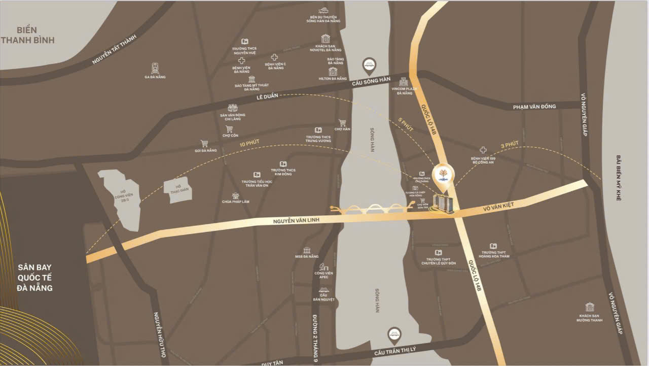 Vị trí kim cương – Tâm điểm kết nối: Nằm ngay đầu cầu Rồng, sở hữu 4 mặt tiền vàng: Võ Văn Kiệt -Ngô Quyền -Lý Nam Đế -Mai Hắc Đế