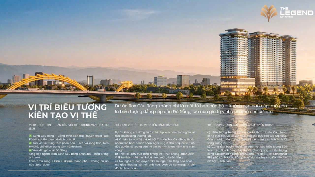 Dự án The Legend Đà Nẵng là một khu phức hợp căn hộ và khách sạn cao cấp, tọa lạc tại vị trí đắc địa trên đường Võ Văn Kiệt, phường An Hải Tây, quận Sơn Trà, thành phố Đà Nẵng.